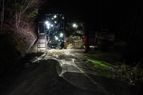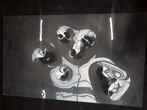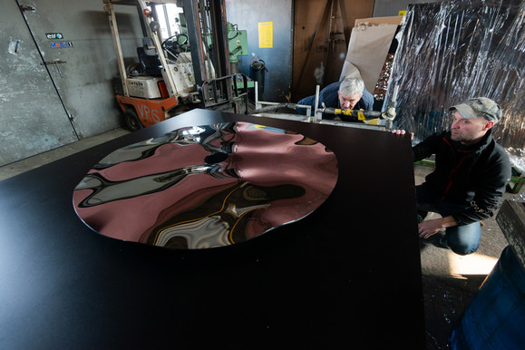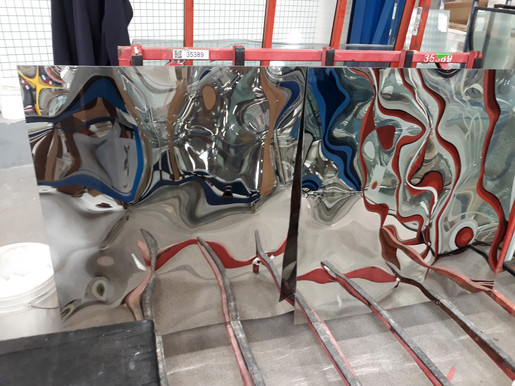 I also use glass. I get an excellent effect by forming panes of glass in a furnace. Thanks to many tests with the cooperation of the specialists at Press-Glass, the effect is perfect.