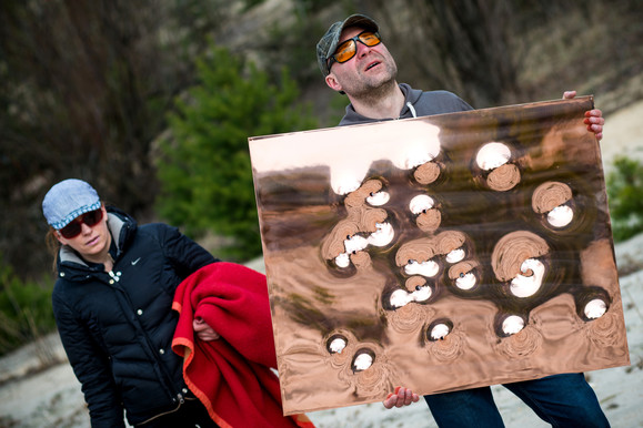 I shoot at this image. I choose the right firearm and I determine the distance. I usually shoot with pistols, sometimes with a rifle. After a series of shots, the effects on the sheets cannot be immediately read.