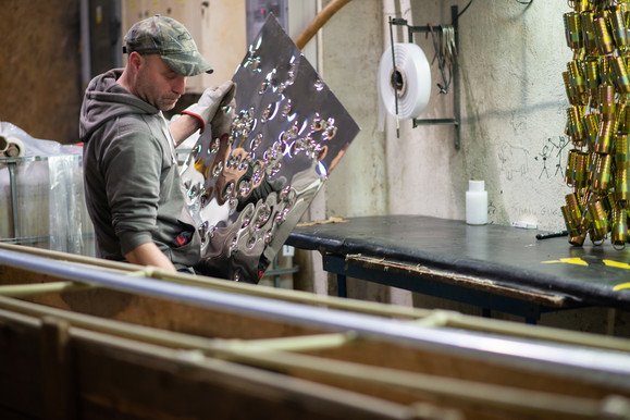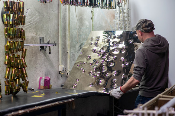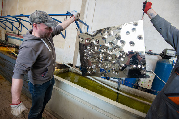 Powłokę lustrzaną uzyskuję chromując blachy. Współpracuję z mistrzem, w tej dziedzinie, Tomaszem Curyło, właścicielem galwanizerni TECE.