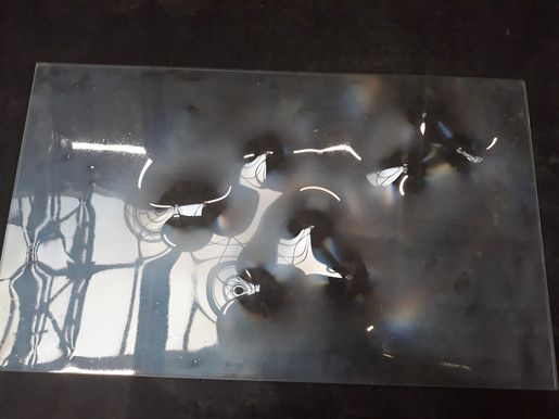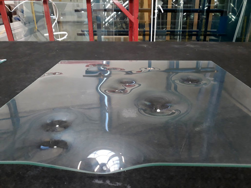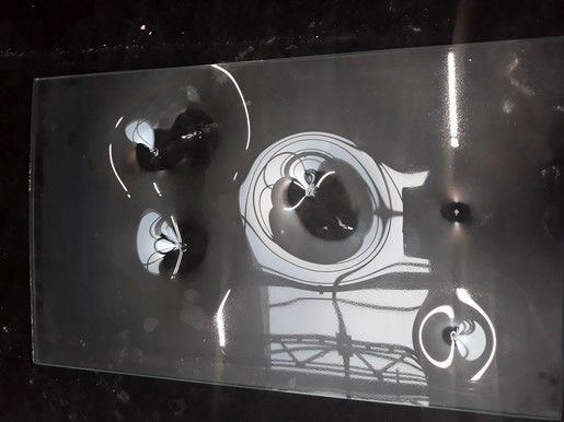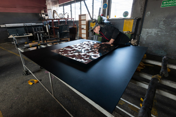 Wykorzystuję również szkło. Doskonały efekt uzyskuję formując w piecu tafle szkła. Dzięki wielu testom, we współpracy, ze specjalistami firmy Press-Glass efekt jest absolutny.