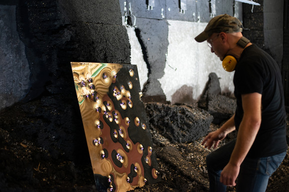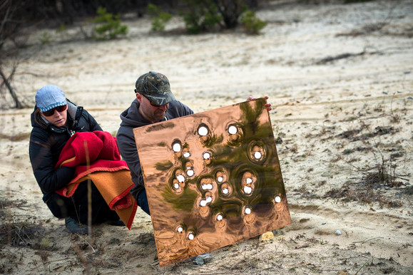 Wybieram odpowiednią broń palną i ustalam dystans. Zazwyczaj strzelam z pistoletów, czasem z karabinu. Efektów na blasze, po serii strzałów, nie można odczytać natychmiast.